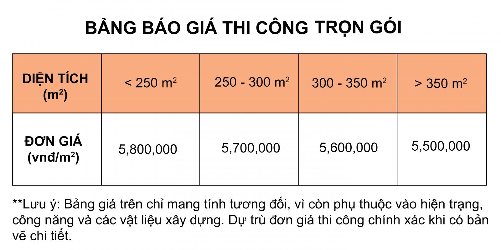 Kiến trúc Làng Việt xin gửi đến quý khách hàng bảng báo giá thi công trọn gói - chìa khoá trao tay chi tiết:
