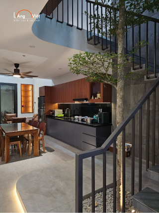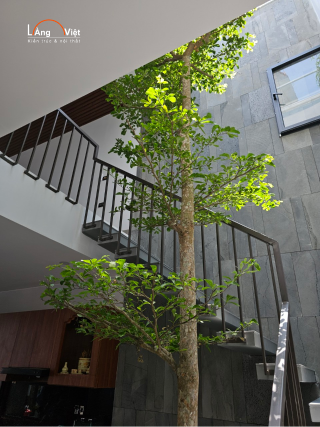 Giếng trời không chỉ để lấy sáng, nó là trục "thở" của cả khối công trình. Tại Làng Việt, chúng tôi thiết kế giếng trời kết hợp tiểu cảnh (hành Mộc) để cân bằng ngũ hành, tạo ra luồng sinh khí mát mẻ, xoa dịu cái nóng nảy của năm Hỏa. Cầu thang không được đâm thẳng ra cửa chính (gây tán tài). Cần thiết kế cầu thang có nhịp điệu êm ái, ánh sáng đầy đủ để dẫn dụ vượng khí lên các tầng cao.