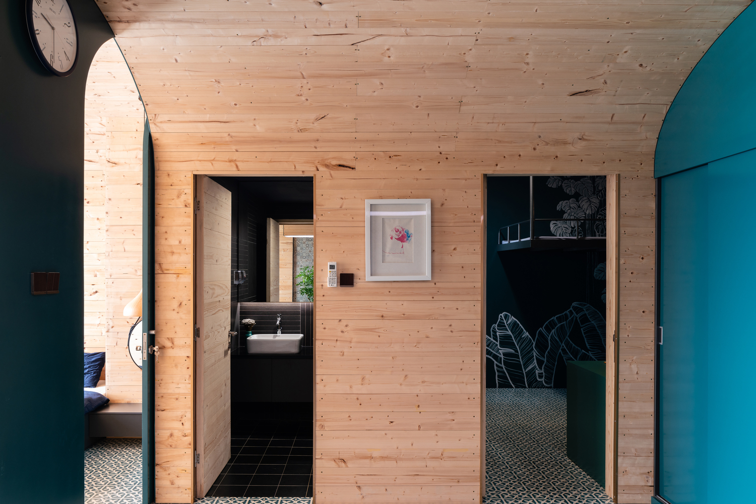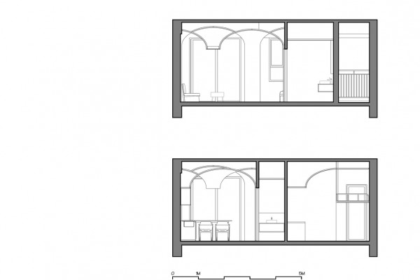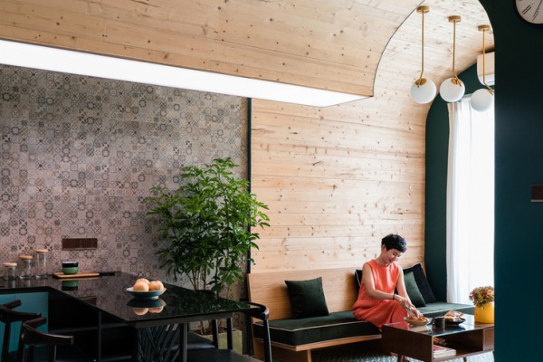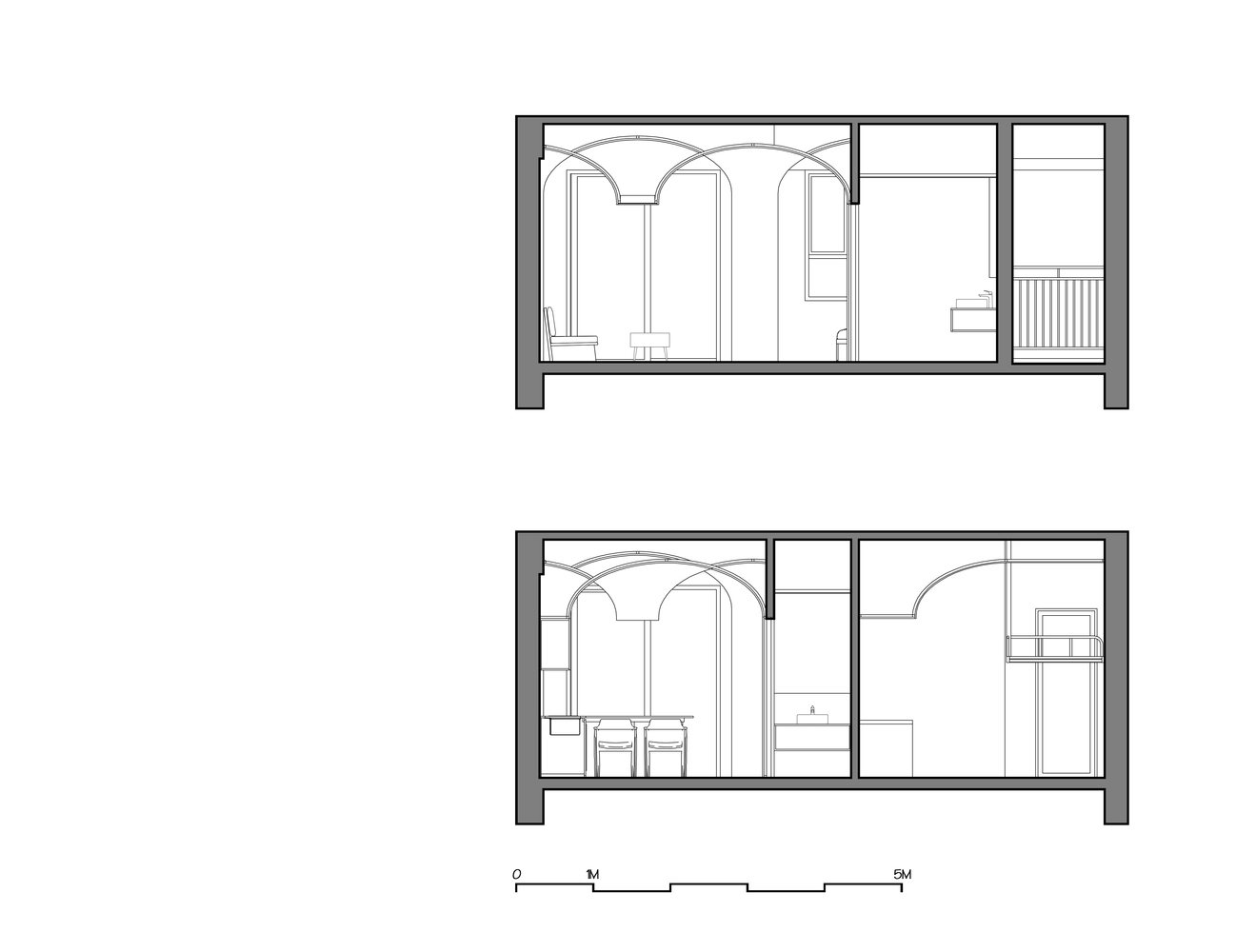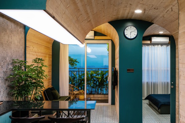 Những mái vòm đan chéo vào nhau để làm không gian trống nên cả khu vừa trở nên tách biệt hẳn ra nhưng vẫn có sự liên kết chặt chẽ. Giờ đây ranh giới giữa tường và trần nhà đã biến mất, không gian dựa trên các mái vòm rất có ý nghĩa và thú vị, giúp xóa bỏ hình ảnh buồn tẻ thường thấy của những căn hộ nhỏ khiêm tốn.