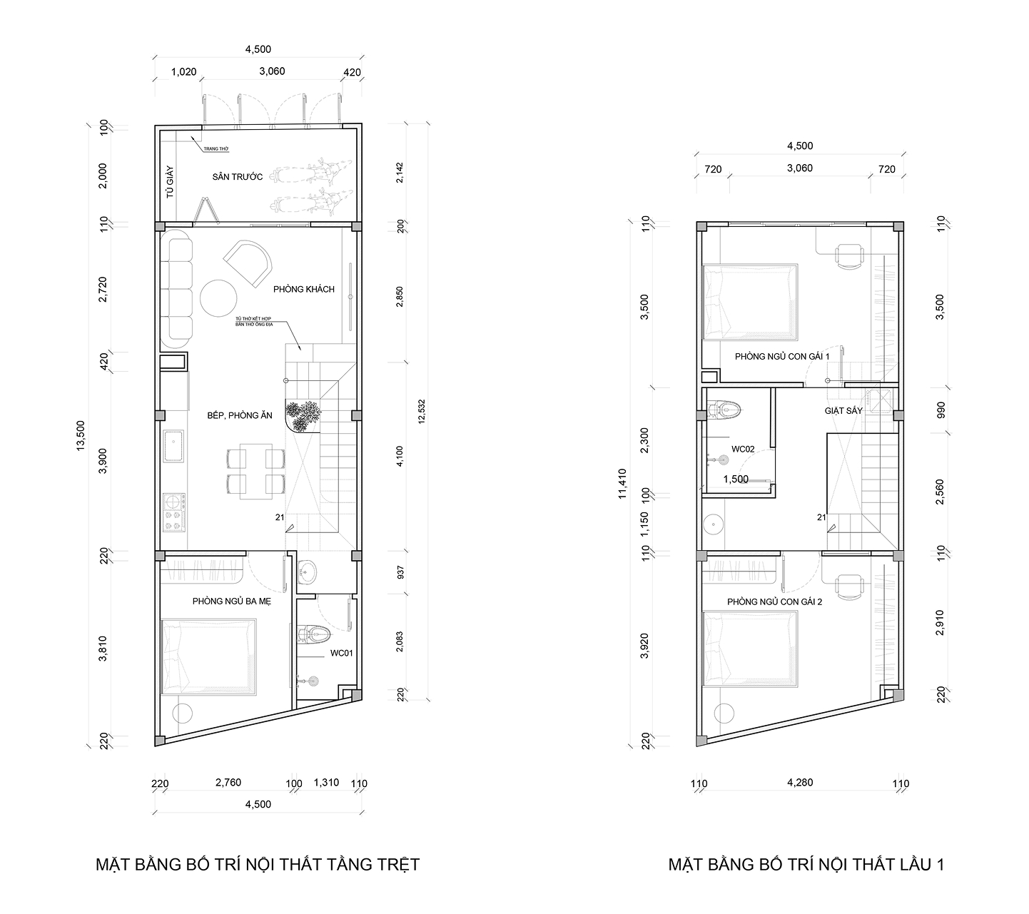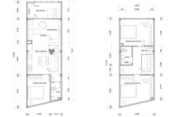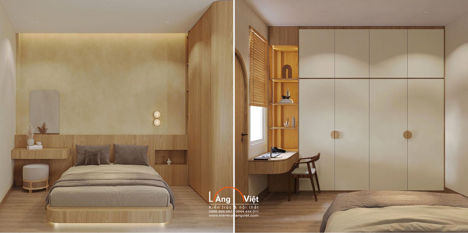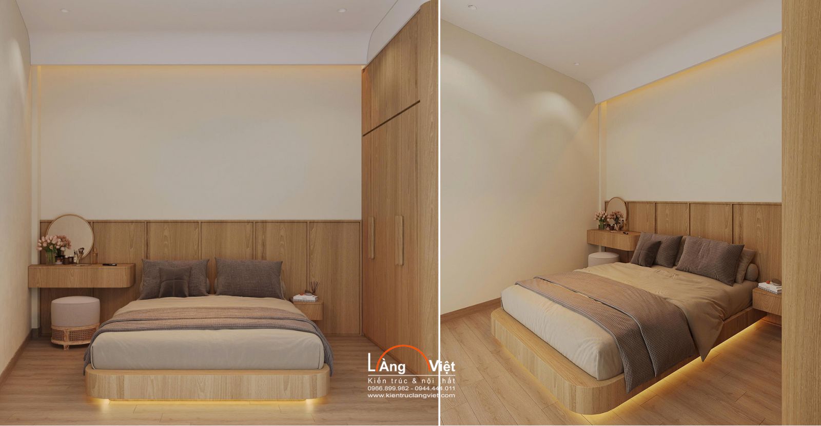 Hôm nay, chúng tôi mời bạn tham quan một case study thực tế: Tổ ấm của gia đình chị Tuyển. Dựa trên hiện trạng lô đất 4.5m x 13.5m với phần đuôi bị vát chéo, đội ngũ Kiến Trúc Làng Việt đã phác thảo nên một kịch bản không gian xuất sắc. Không chỉ giải quyết trọn vẹn bài toán công năng với phòng ngủ trệt tiện lợi, ngôi nhà còn khoác lên mình một vẻ đẹp ấm áp, mềm mại, phá vỡ hoàn toàn định kiến về sự ngột ngạt của nhà ống đô thị.