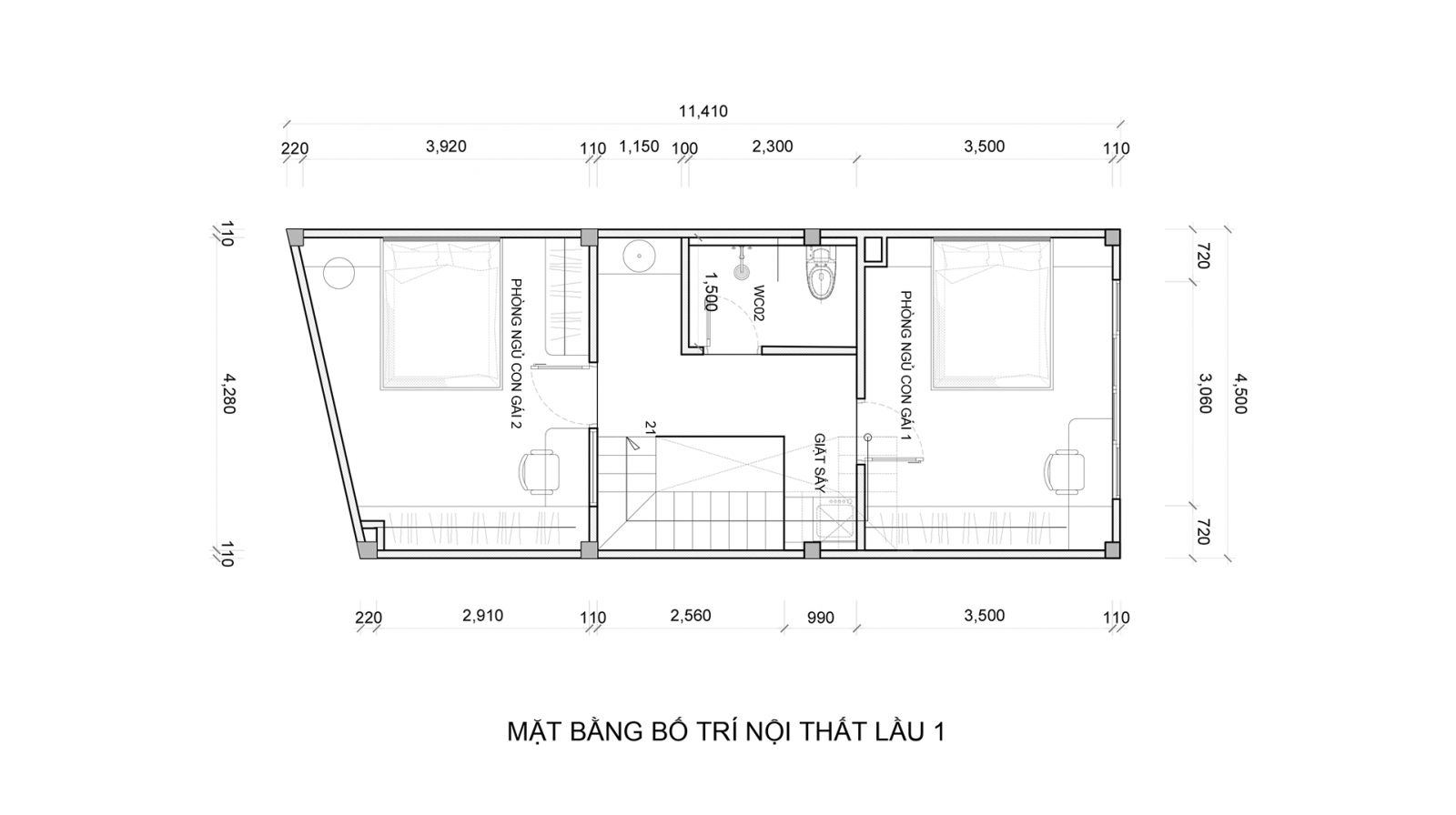 Bước lên Lầu 1 là không gian dành cho thế hệ trẻ với 2 phòng ngủ cho hai cô con gái.